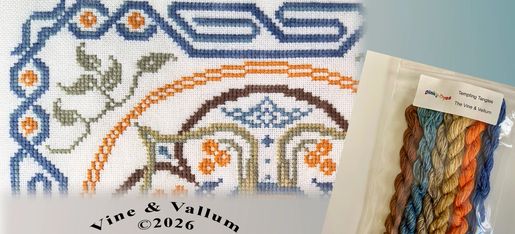 "The Vine and Vallum" ( a sturdy garden wall) our 9 part SAL has started. Details are in our shop. The Vine & Vallum is a cross stitch study in architectural contrast and botanical persistence. This design features an intricate Arabesque trellis is composed of interlaced linework that provides a disciplined structure. Weaving through this geometric framework are soft, flowing vines that soften the rigid angles, creating a harmonious balance between man-made precision and organic growth. It captures the quiet elegance of a hidden courtyard & garden. Enjoy!