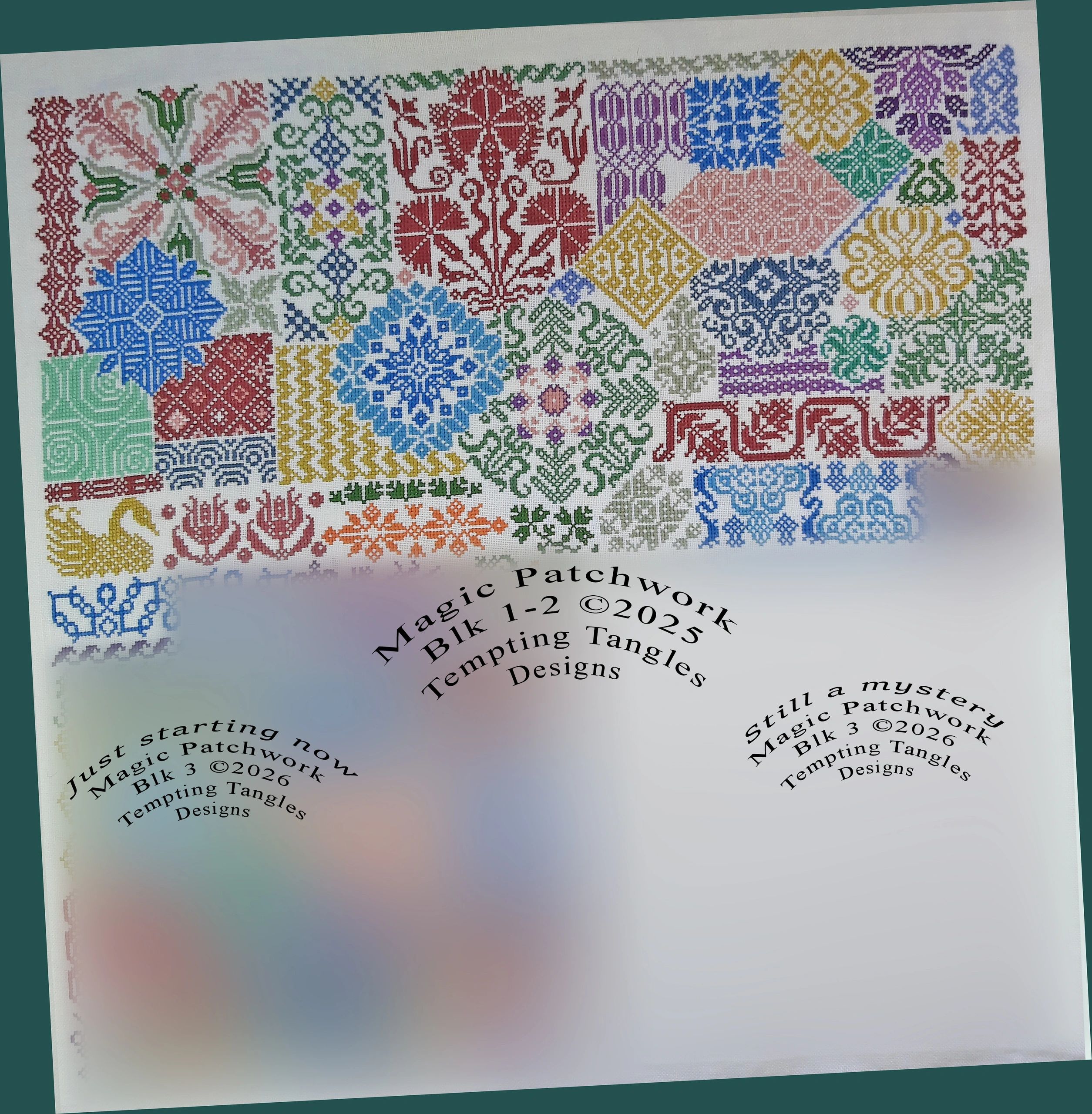 "The Vine and Vallum" ( a sturdy garden wall) our 9 part SAL has started. Details are in our shop. The Vine & Vallum is a cross stitch study in architectural contrast and botanical persistence. This design features an intricate Arabesque trellis is composed of interlaced linework that provides a disciplined structure. Weaving through this geometric framework are soft, flowing vines that soften the rigid angles, creating a harmonious balance between man-made precision and organic growth. It captures the quiet elegance of a hidden courtyard & garden. Enjoy!